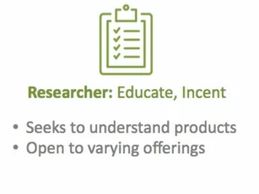 The next three examples are Researchers of varying maturity. Although anchored in their wants & needs, their search behavior indicates that they seek affirmation before striking.
