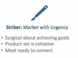 The journey from awareness to consideration to purchase varies among customers. Some online customers know what they're seeking, others learn as they go, or simply browse. Recognizing how Strikers differ from Researchers & Explorers, Navi alerts the need for marketing urgency — or the need to educate, nurture or encourage.
