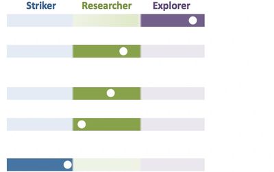 Navi isolates readiness, charting it on a spectrum from Striker to Researcher to Explorer. Don't let the Strikers get away, they're ready to buy now! And nurture Researchers & Explorers: earn their loyalty by responding to their specific triggers.